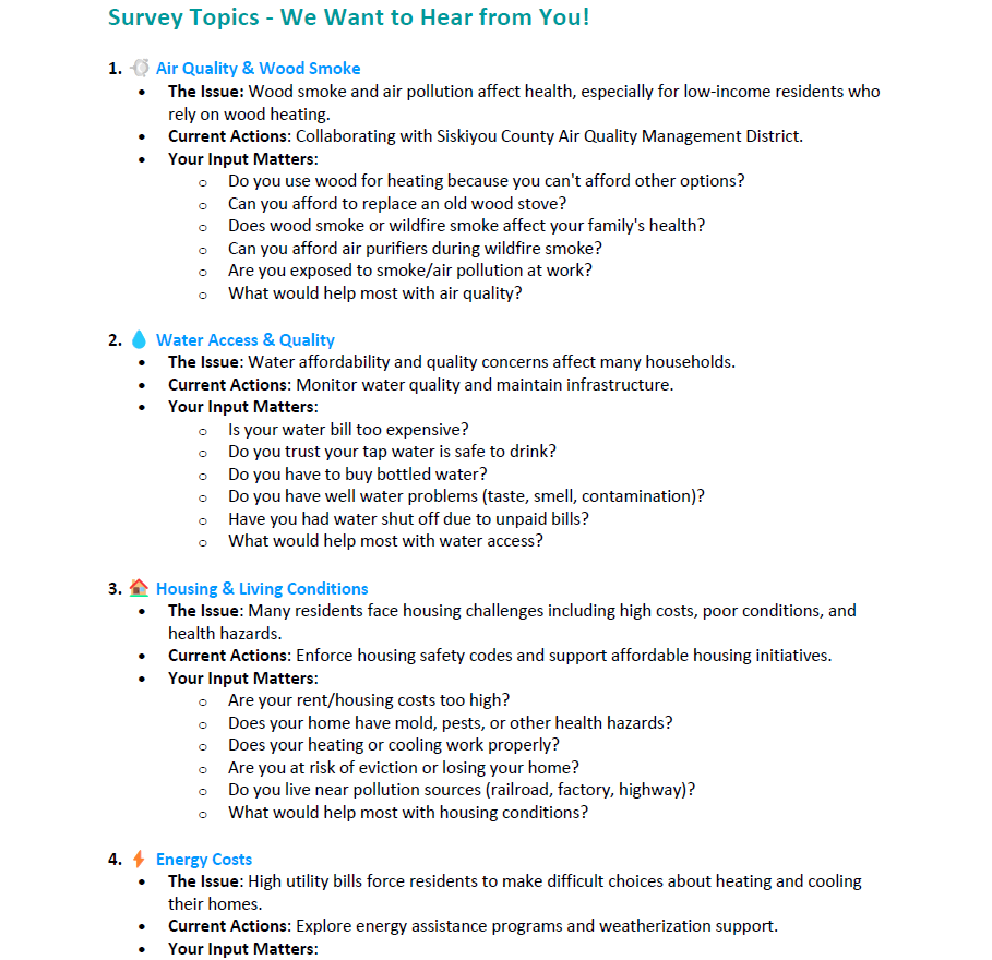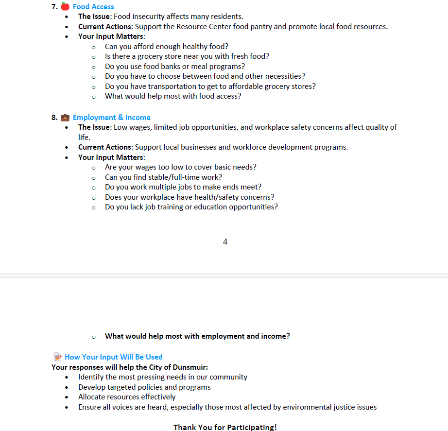 🎯 Goal: Get YOUR input on policies to improve health and quality of life in Dunsmuir.